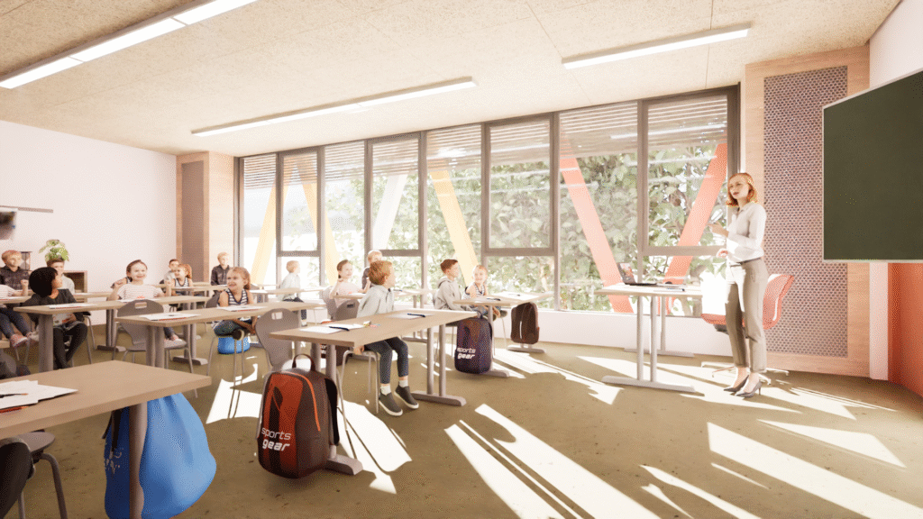 Das Projekt berücksichtigt die gewachsenen Strukturen und schafft gleichzeitig moderne Lernumgebungen mit hoher Aufenthaltsqualität, optimierter Gebäudetechnik und nachhaltiger Bauweise. Für den Schulträger bedeutet dies: langfristige Betriebssicherheit, klare Kostenstruktur und eine Investition in die Zukunft der Bildung vor Ort.