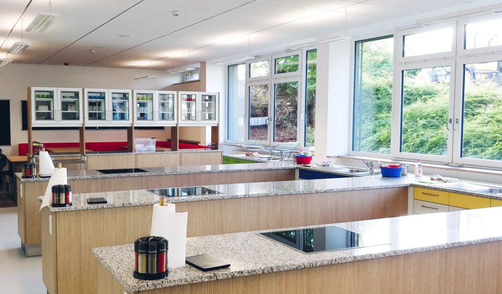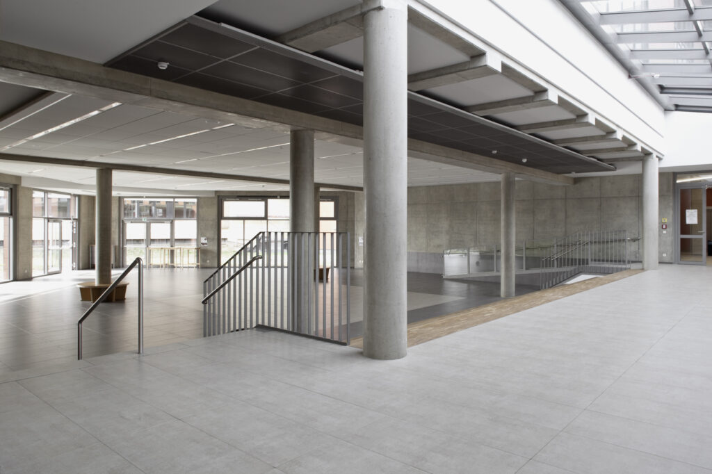 Eine große Herausforderung war die Aufrechterhaltung des Schulbetriebs für über 1.000 Schüler während der gesamten Bauzeit, ohne dass Ausweichgebäude benötigt wurden.