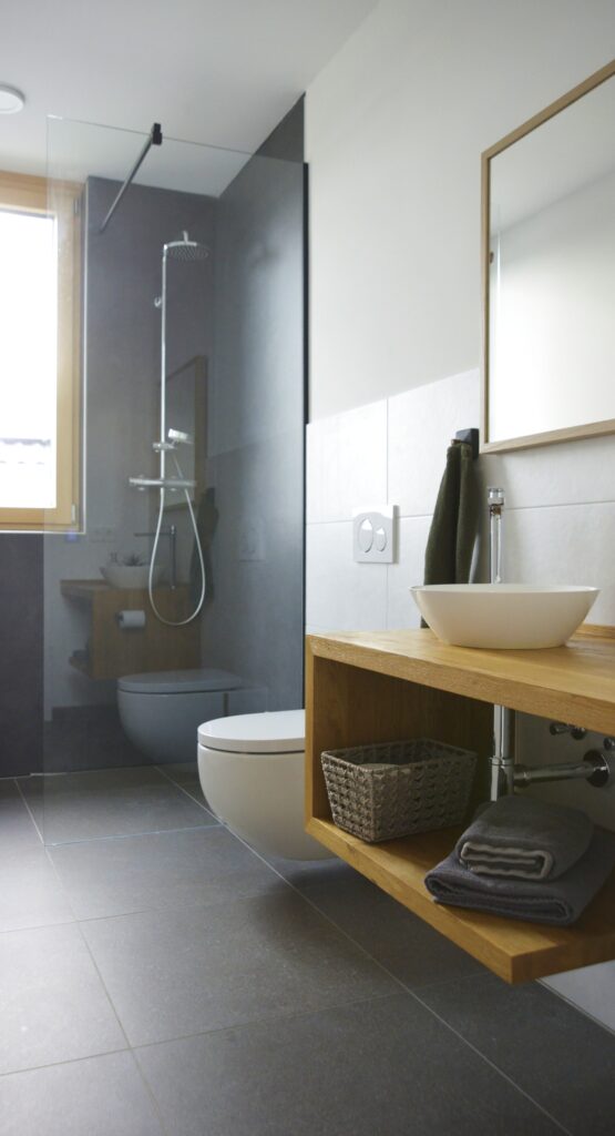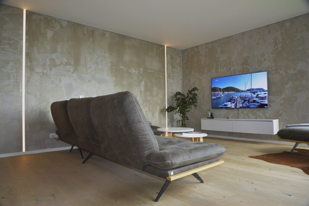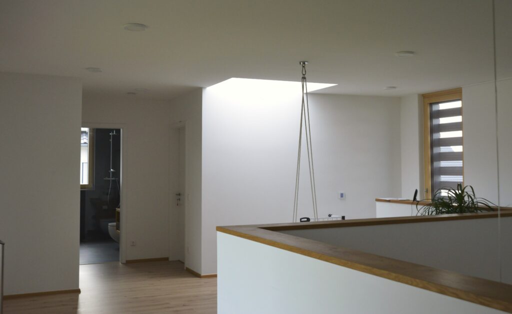 Technisch auf dem neuesten Stand, ist das Gebäude mit einer PV-Anlage und einer Wärmepumpe ausgestattet, wodurch es als Plus-Energie Haus jährlich mehr Strom produziert, als es verbraucht. Die hochwertige Bangkirai-Terrasse fügt sich nahtlos in den Innenbereich ein und erweitert den Lebensraum nach draußen.